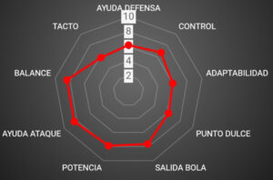 Perfil ofensivo, que busca potencia y definición, con un tacto cómodo, y ayuda por parte de la pala, en ritmos medios.